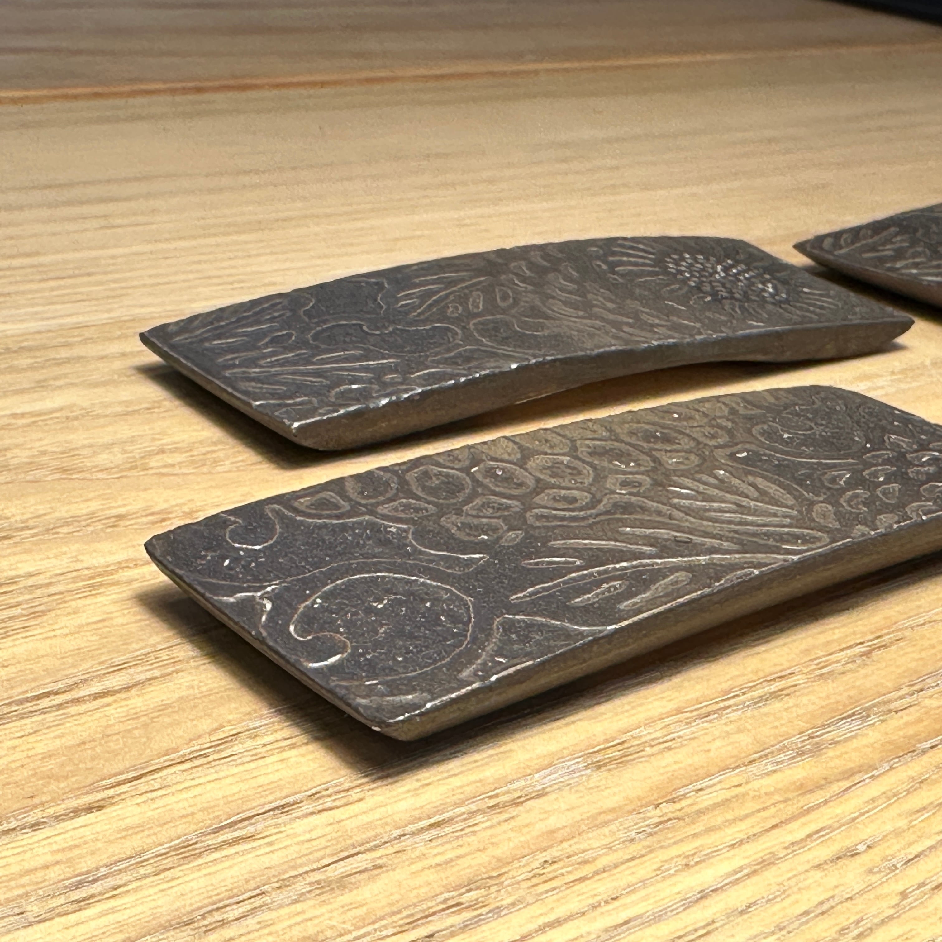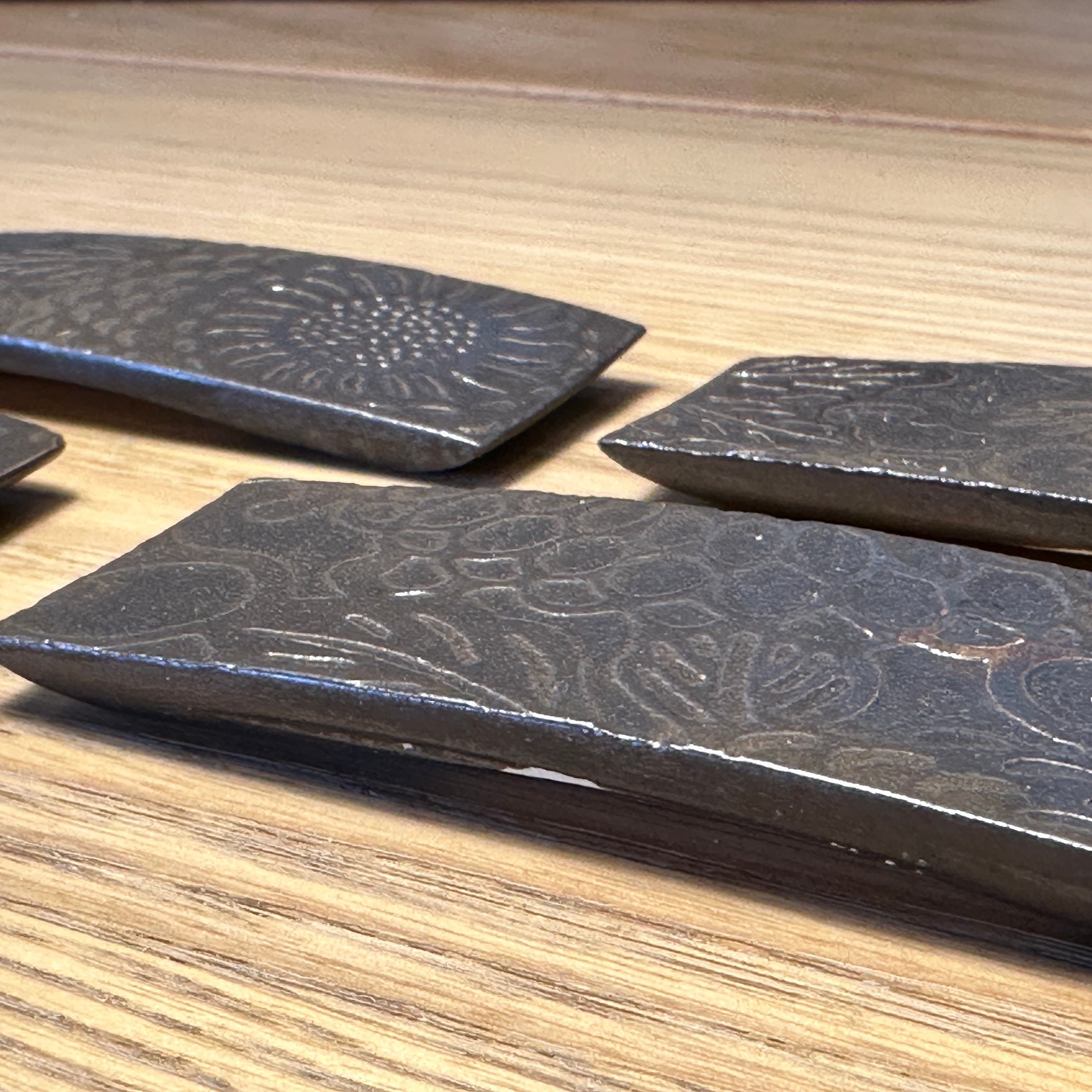 【訳アリ】紅型陶器・箸置き・カトラリーレスト(黒金釉薬)